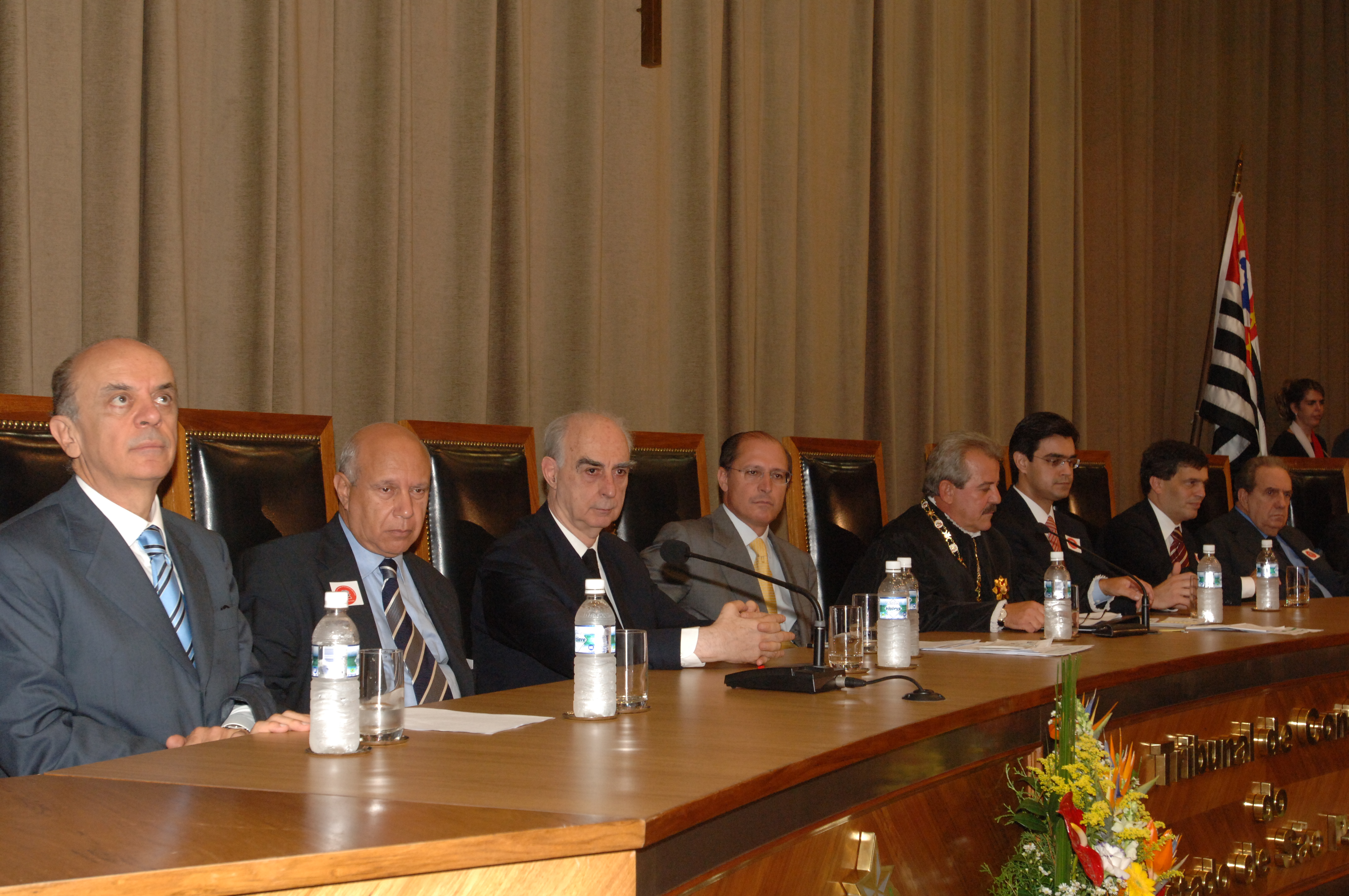 Posse do presidente do TCE , na foto: Jose Serra, Celso Luiz Limongi, Claudio Lembo, Geraldo Alckmin, Robson Marinho, Presidente Rodrigo Garcia, Fernando Ferreira Pinho, nao identificado, 31/01/2006