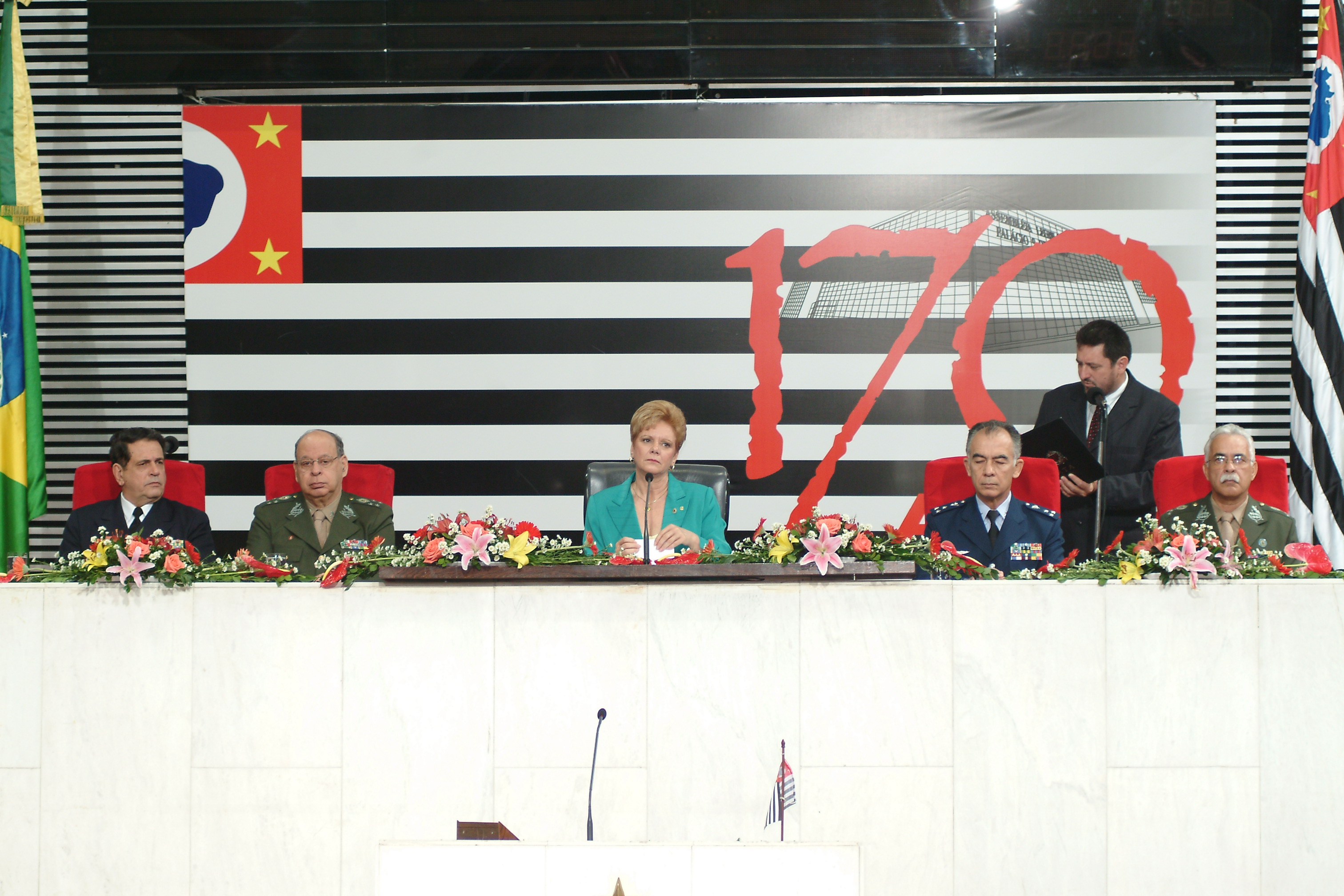 Solene dia do soldado, na foto ao centro: Rosmary Correa, presentes na solene: general-de-exercito Luiz Edmundo Maia de Carvalho, comandante militar da regiao sudeste, major-brigadeiro-do-ar, Paulo Roberto Vilarinho, comandante do IV Comando Aereo, coral Clube da Cidade do Jardim Sao Paulo, sob a regencia do maestro Antenor Pinto Correa, 22/08/2005