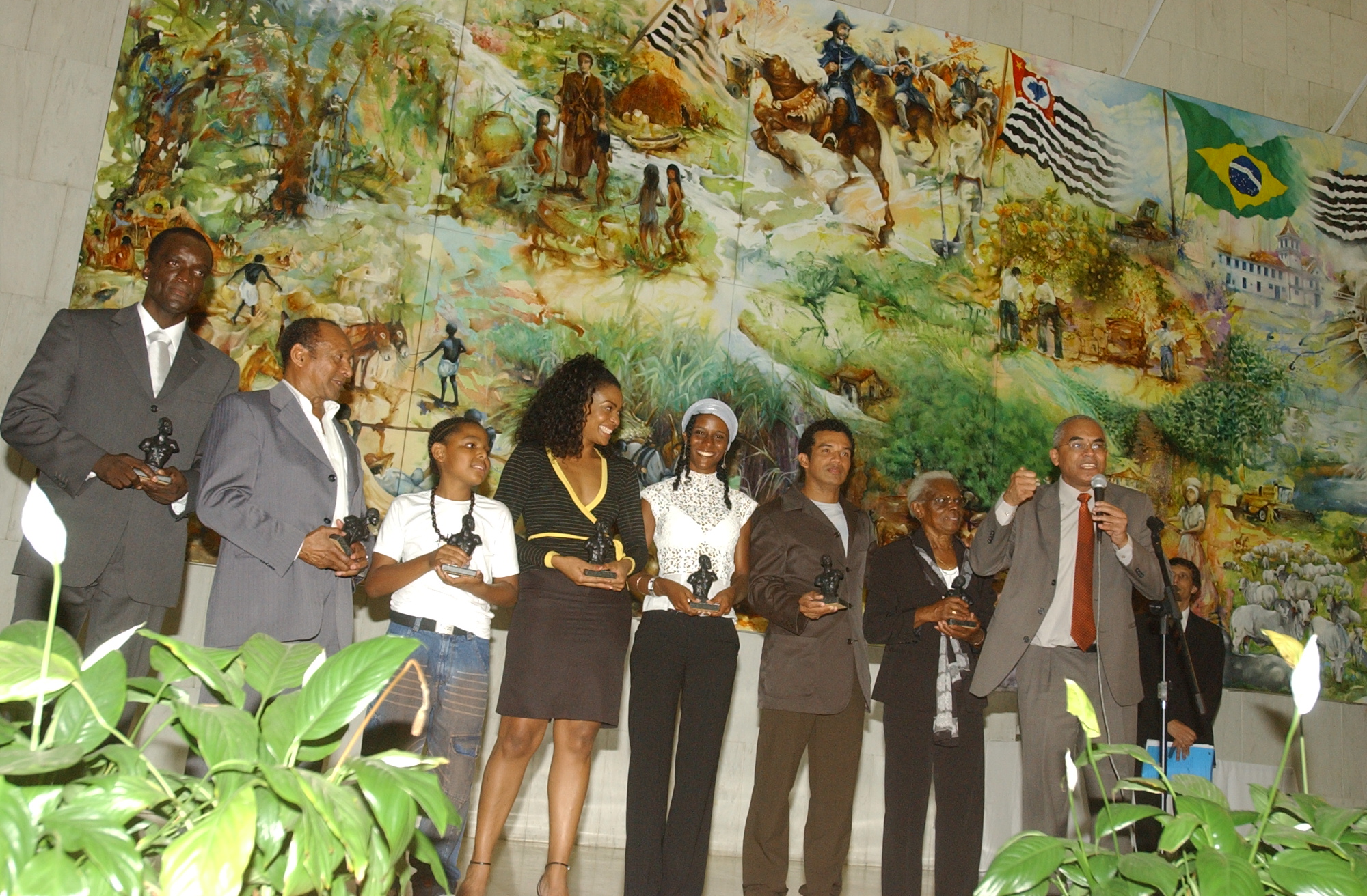 Assembleia encerra IV Semana de Cultura Negra com entrega de premio Zumbi dos Palmares, presentes no evento: Primo Preto, do Movimento Hip Hop, Netinho de Paula, apresentador de TV, Vladimir ex-jogador do Corinthians, Mãe Dango e atores da novela A Escrava Isaura., Os premios foram entregues pelos deputados Ana Martins, Maria Lucia Prandi, Nivaldo Santana, Turco Loco, Renato Simoes, Joao Caramez, Sebastiao Arcanjo, Simao Pedro, Fausto Figueira , Roberto Felicio, 24/11/2005 Fotografia: Roberto Navarro