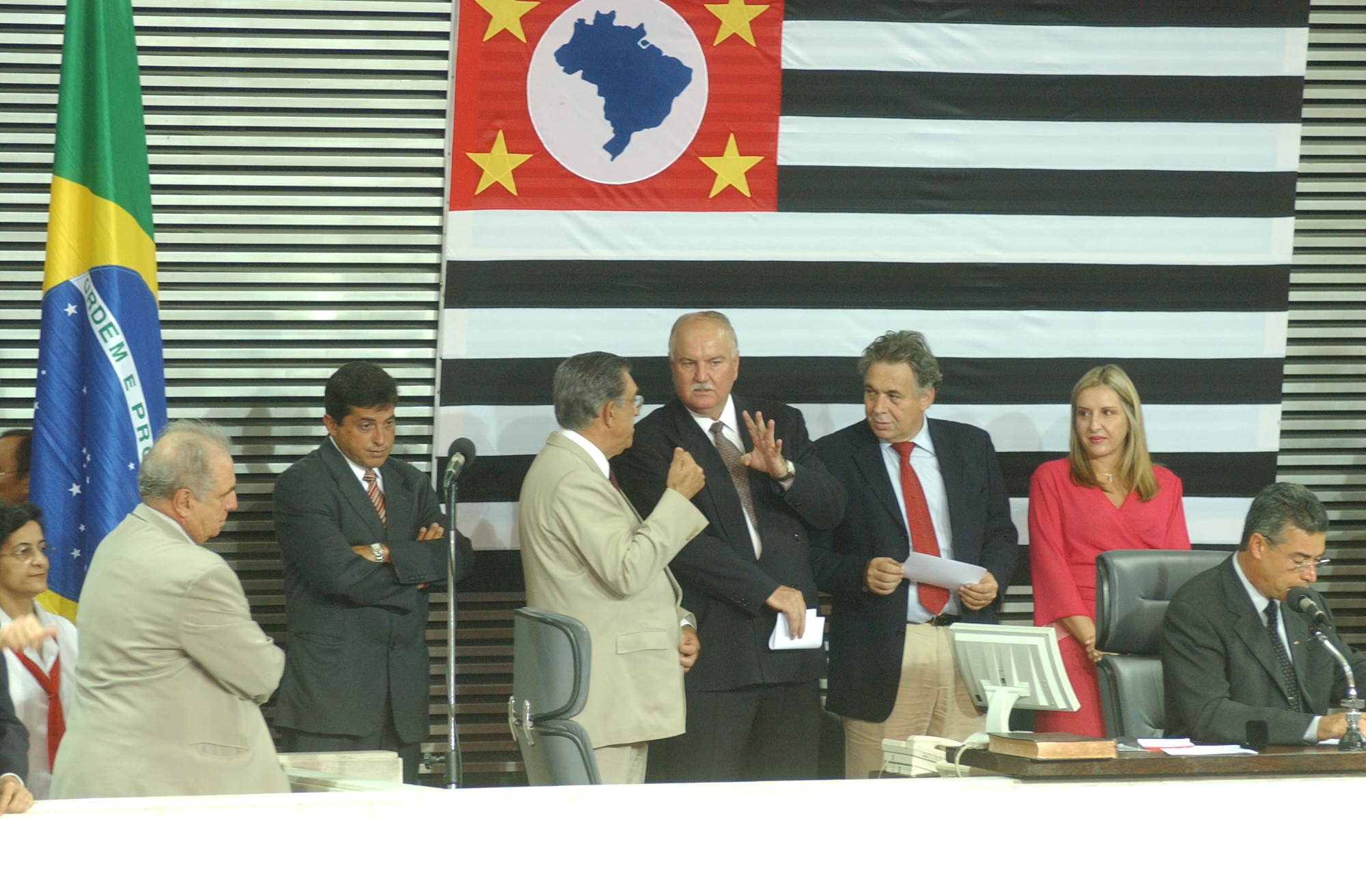 1 Sessao Ordinaria com Posse dos deputados: na foto: Vitor Sapienza (de lado), Jorge Caruso, Edson Ferrarini, Jose Carlos Tonin, Flavio Chaves, Monica Becker, Celino Cardoso (microfone), na sessao: Alberto Calvo, 03/02/2003 Fotografia: José Antonio Teixeira