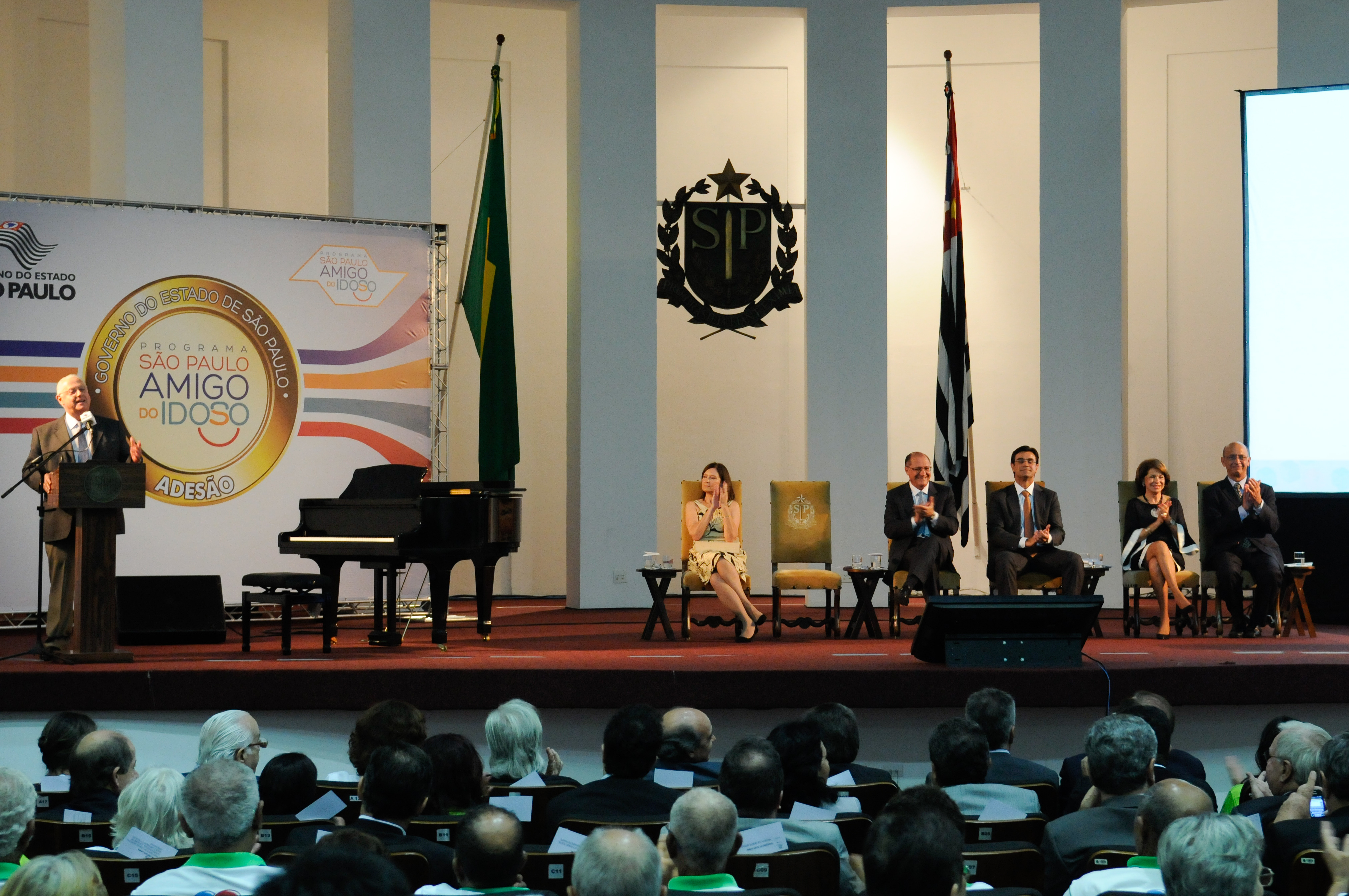 Deputados participam do lançamento do Programa Sao Paulo Amigo do Idoso, na foto: Presidente Barros Munhoz (microfone), Marli Cortez, Geraldo Alckmin, Rodrigo Garcia, Maria Helena Giumaraes de Castro, Alexandre Kalache, 28/11/2012 Fotografia: Roberto Navarro