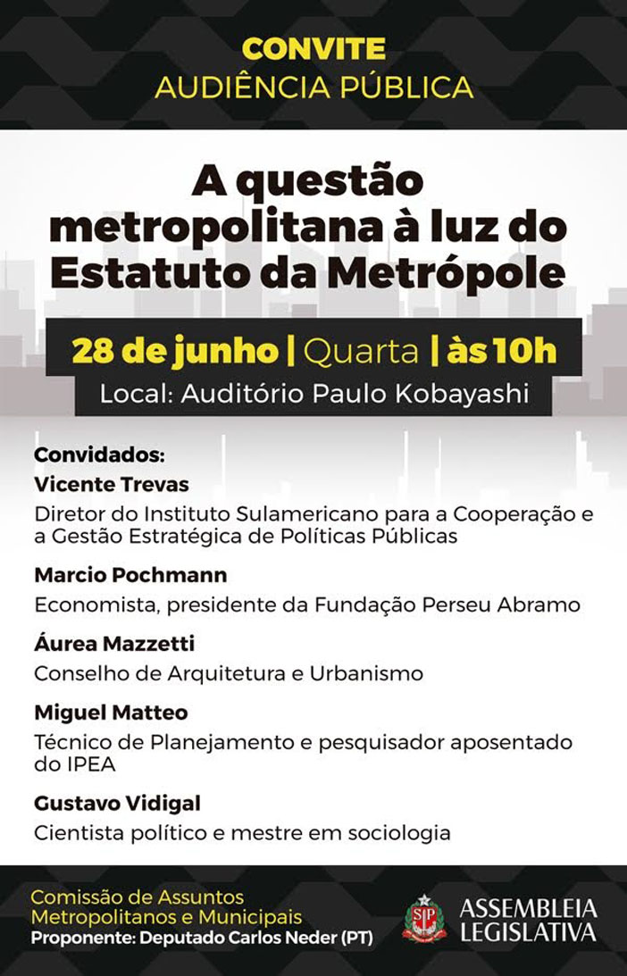 26/06/2017 - Diretrizes para regiões metropolitanas serão debatidas Assembleia - Veja detalhes