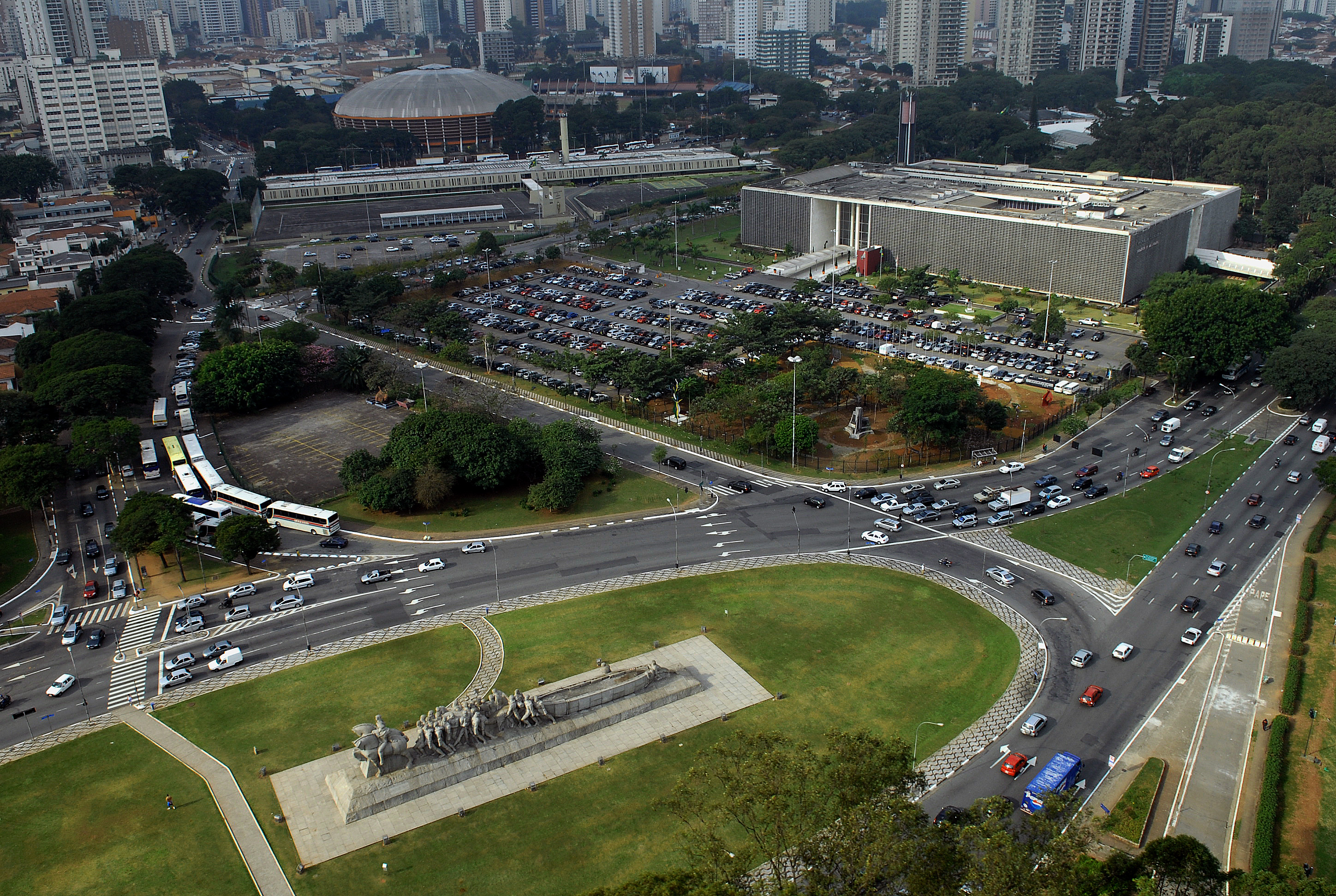 foto aérea com o monumento de brecheret em 1º plano.Foto: Marco Cardelino