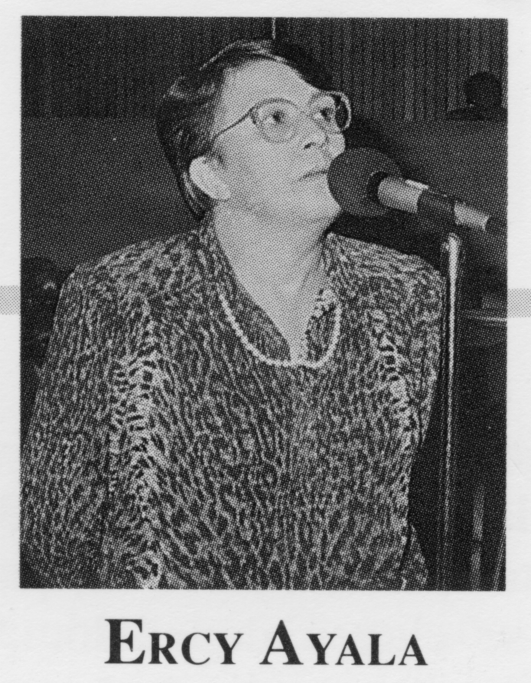 ERCI APARECIDA MARTINELLI DE LIMA AYALA (Tambaú, SP, 10/3/1945 - São Paulo, SP, 15/06/2000) Pedagoga, radialista, apresentadora de televisão, orientadora educacional e professora de psicologia social, atuando na recuperação de alcoólatras e toxicômanos, foi deputada estadual pelo PMDB entre 1987 e 1991. Eleita para a Constituinte com 37.176 votos, concentrados na sua maioria em sua cidade natal, priorizou sua atuação política na luta pela prevenção e recuperação do consumo de álcool e drogas e também contra a caça. Participou como efetiva das comissões do Poder Executivo e de Sistematização e como suplente das comissões de Administração Pública e da Ordem Econômica e Social.
