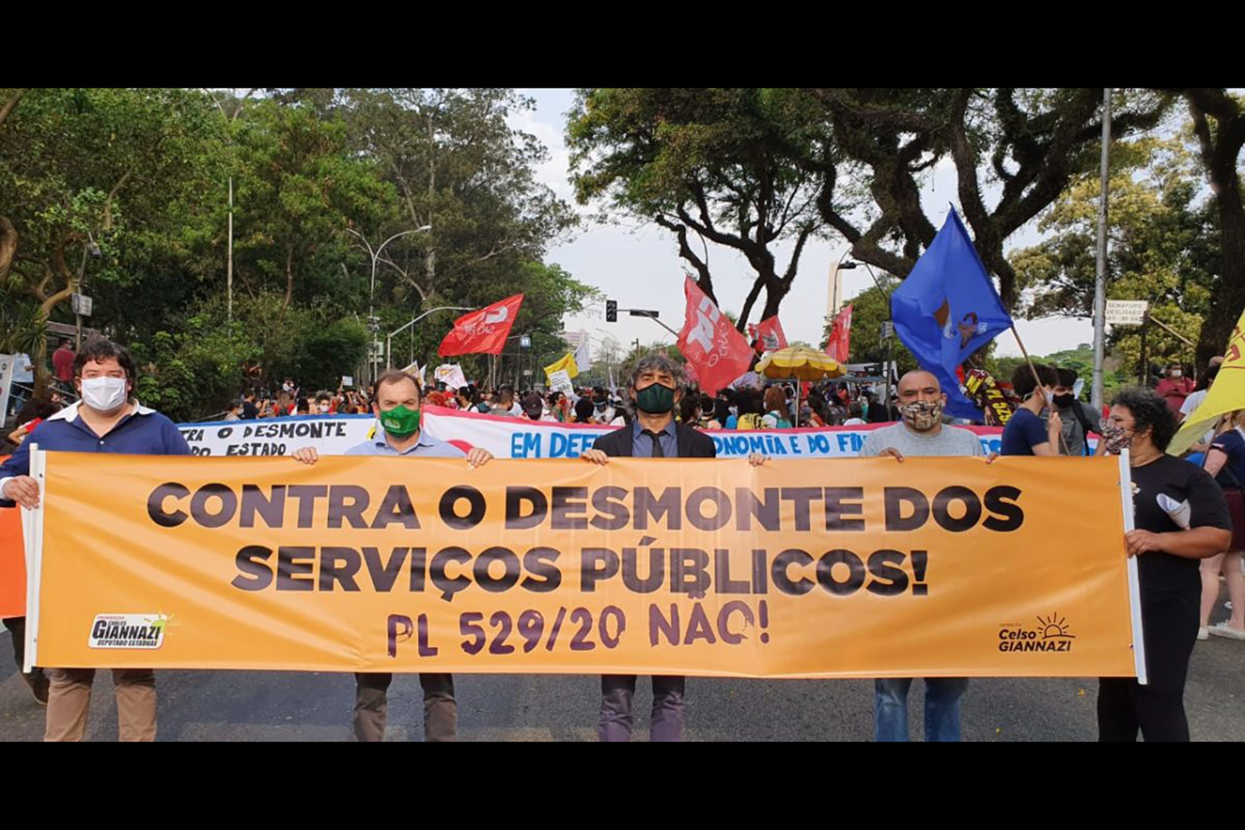 Carlos Giannazi (centro) participa de manifestação de servidores contra o PL 529, em 2020