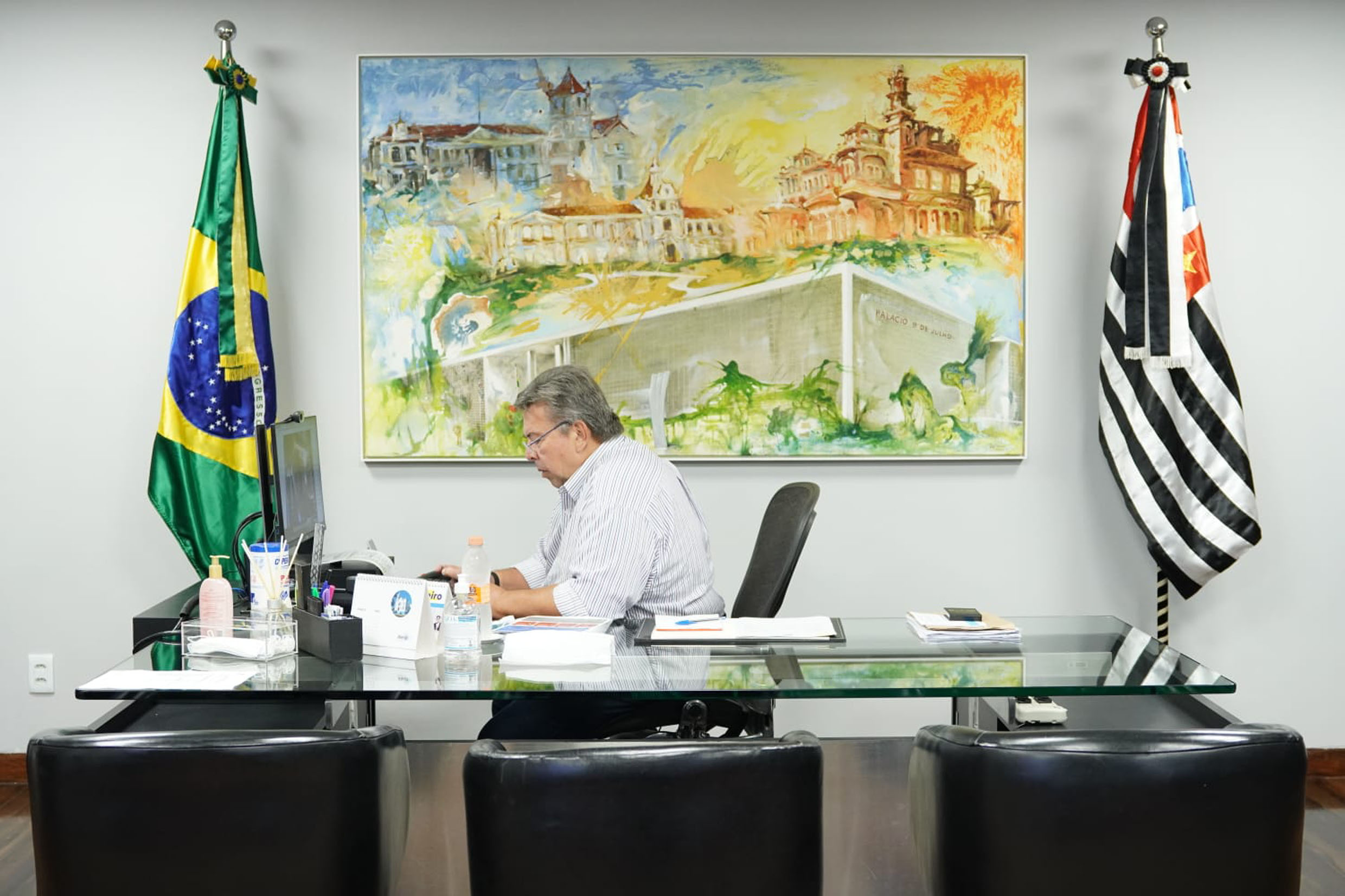 Carlão Pignatari durante reunião virtual com chefes de poderes e instituições estaduais