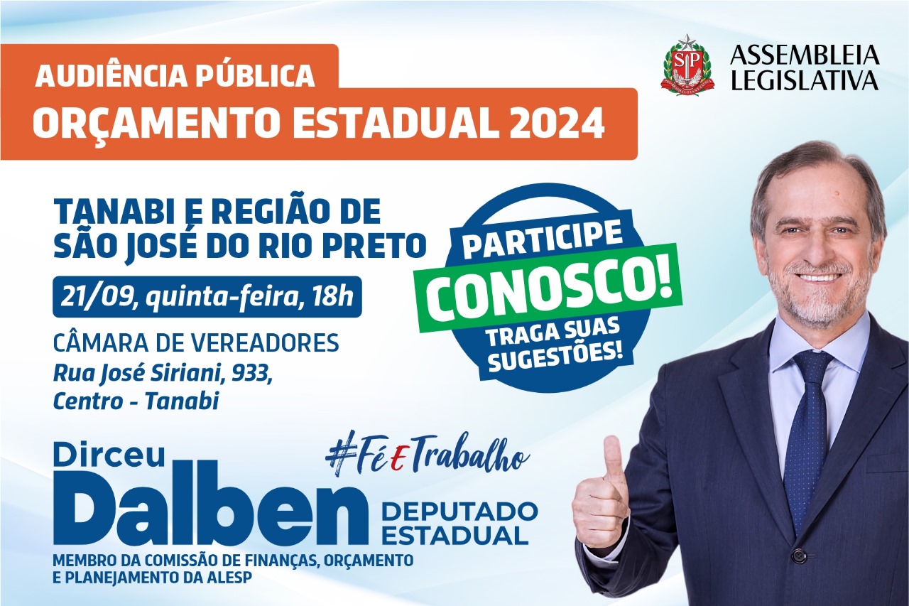 13/09/2023 - Deputado convida população de Tanabi e região para audiência pública do Orçamento Estadual 2024 - Veja detalhes