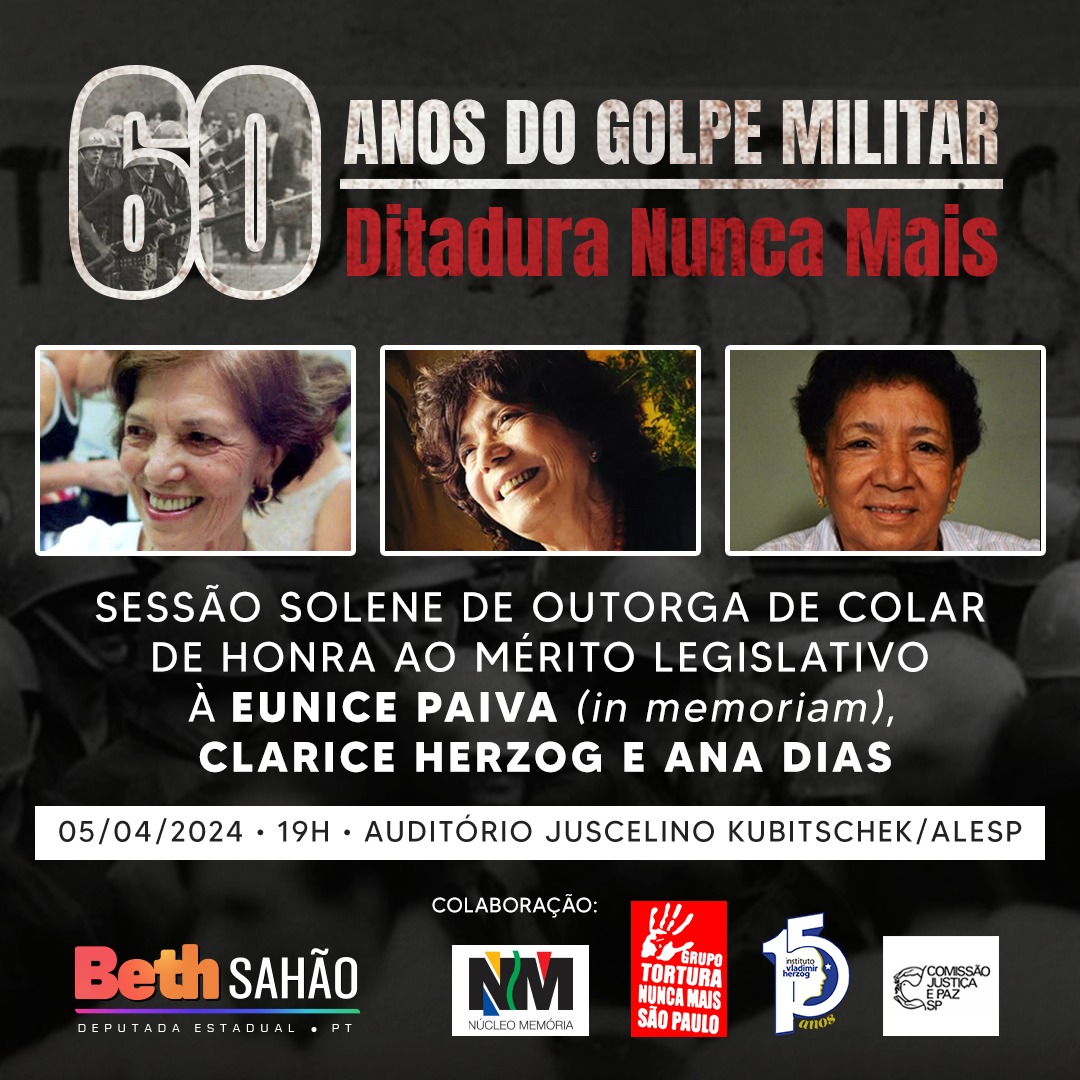 05/04/2024 - Sessão Solene homenageia Clarice Herzog, Ana Dias e Eunice Paiva - Veja detalhes