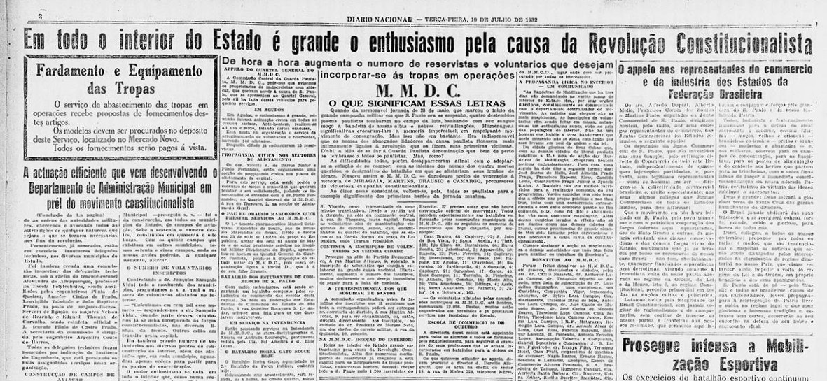 MMDC virou símbolo/Diário Nacional 19/7/1932