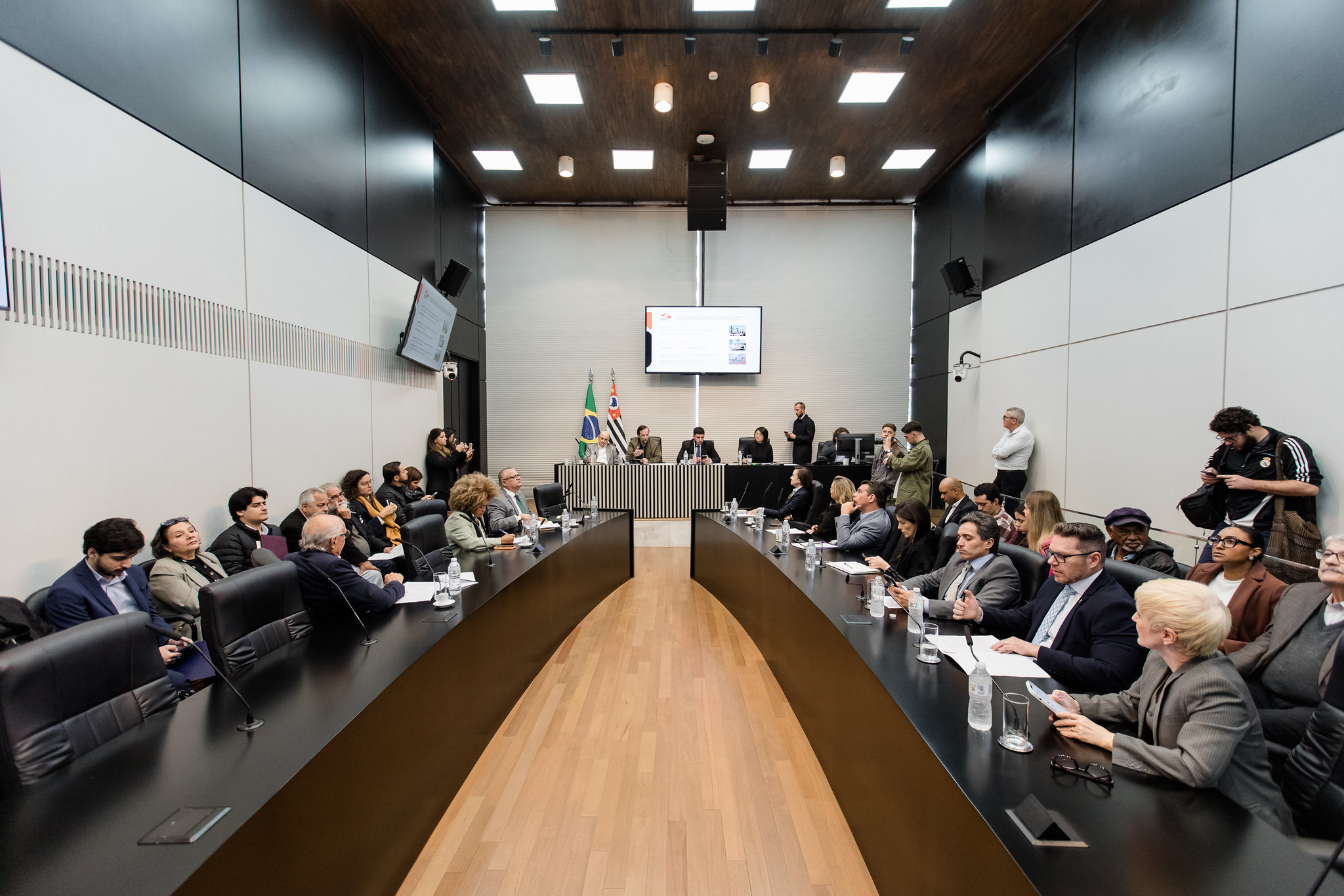 Parlamentares reunidos na Comissão de Habitação