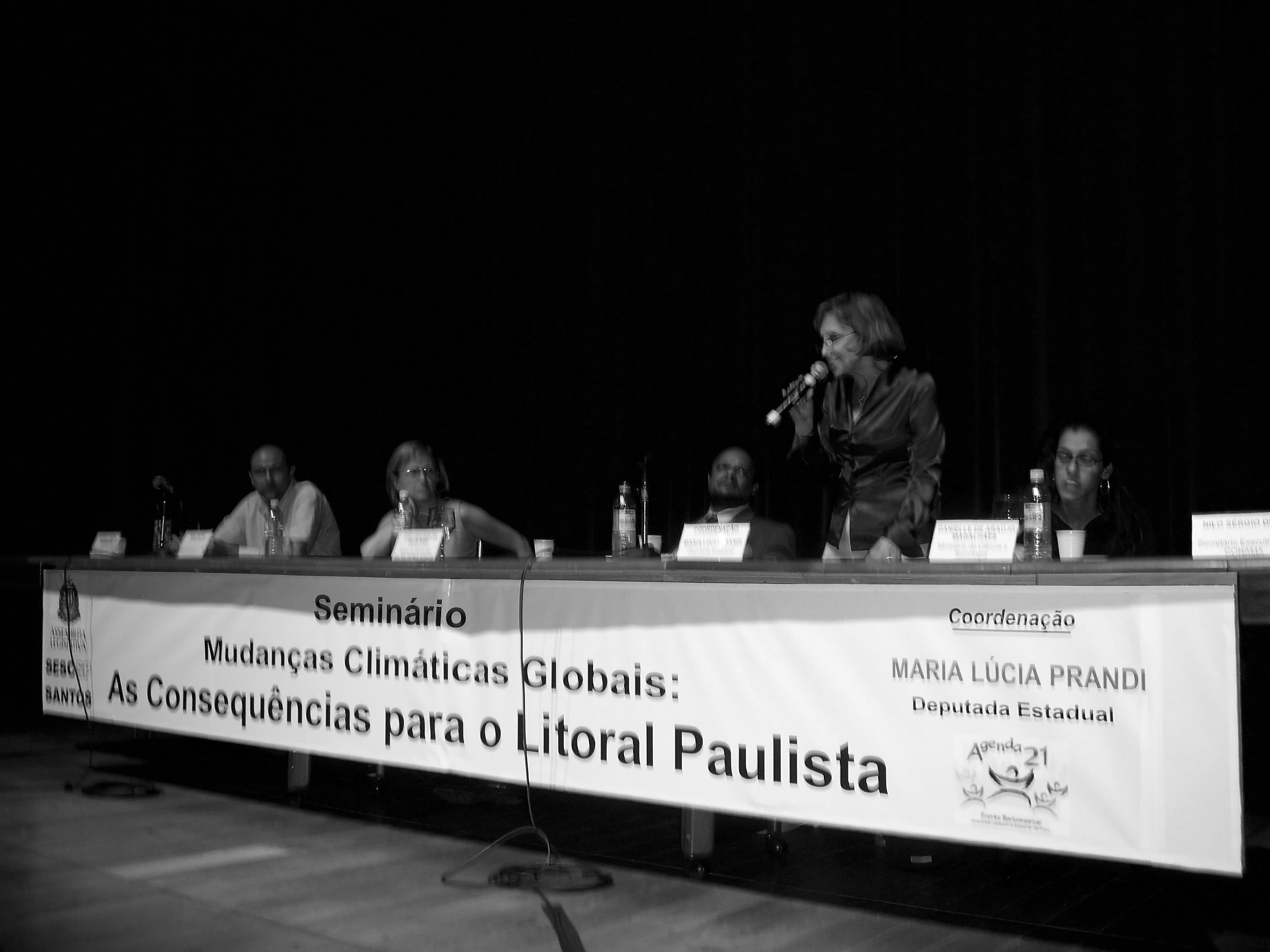 A deputada Maria Lúcia Prandi fala durante a abertura do seminário. A primeira mesa reuniu representantes dos governos estadual e federal, além da sociedade civil