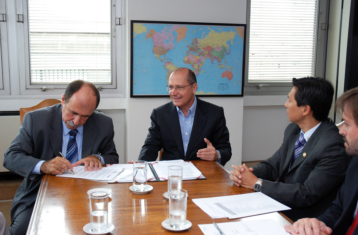 Caramez (à esq.) e Geraldo Alckmin (centro)