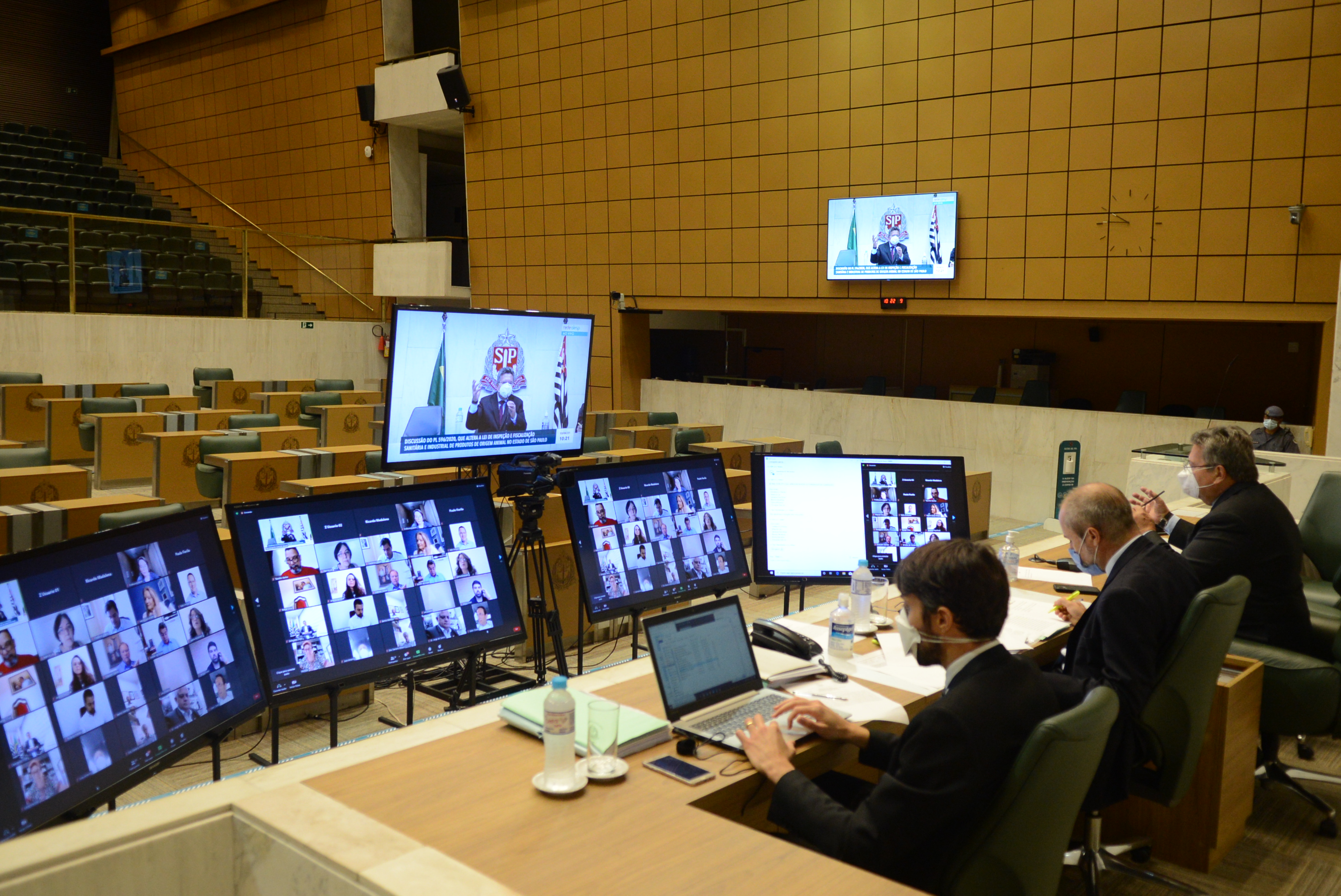 Com o Decreto 64.879/2020, a Alesp suspendeu suas atividades presenciais e de atendimento ao público, mas continuou atuando junto ao Governo do Estado na tomada de decisões sobre a pandemia.